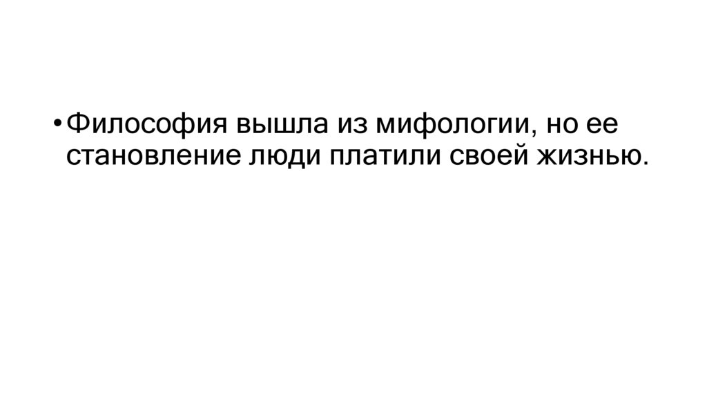 • Философия вышла из мифологии, но еестановление люди платили своей жизнью.