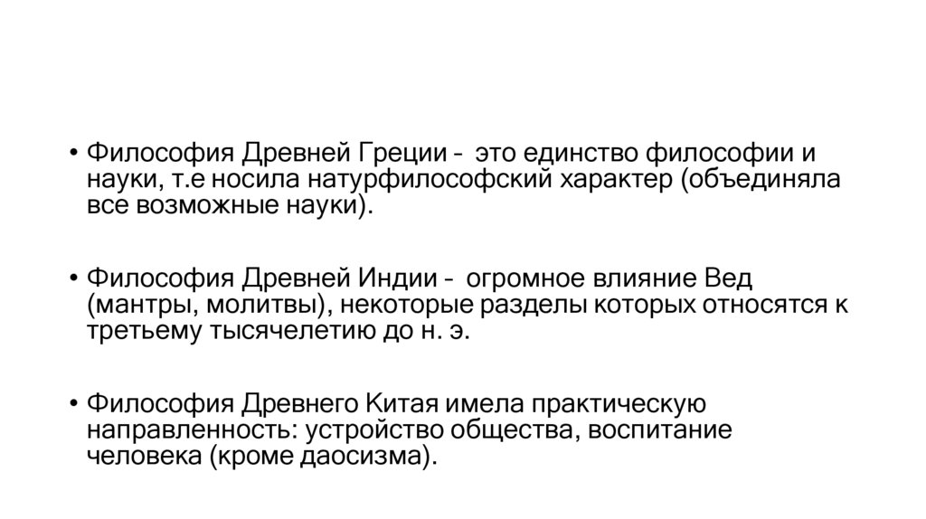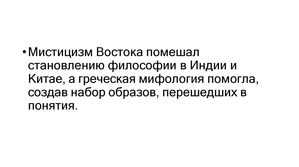 • Мистицизм Востока помешалстановлению философии в Индии и