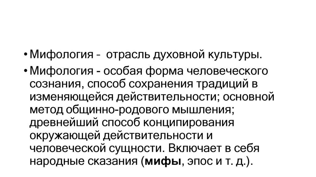 • Мифология – отрасль духовной культуры.• Мифология - особая форма человеческого