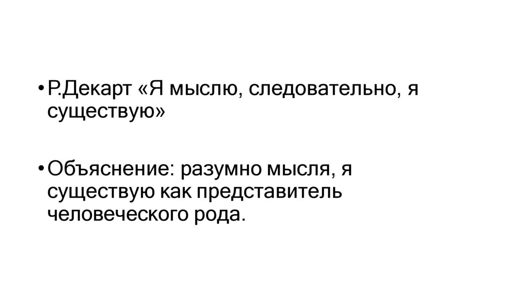 • Р.Декарт «Я мыслю, следовательно, ясуществую»