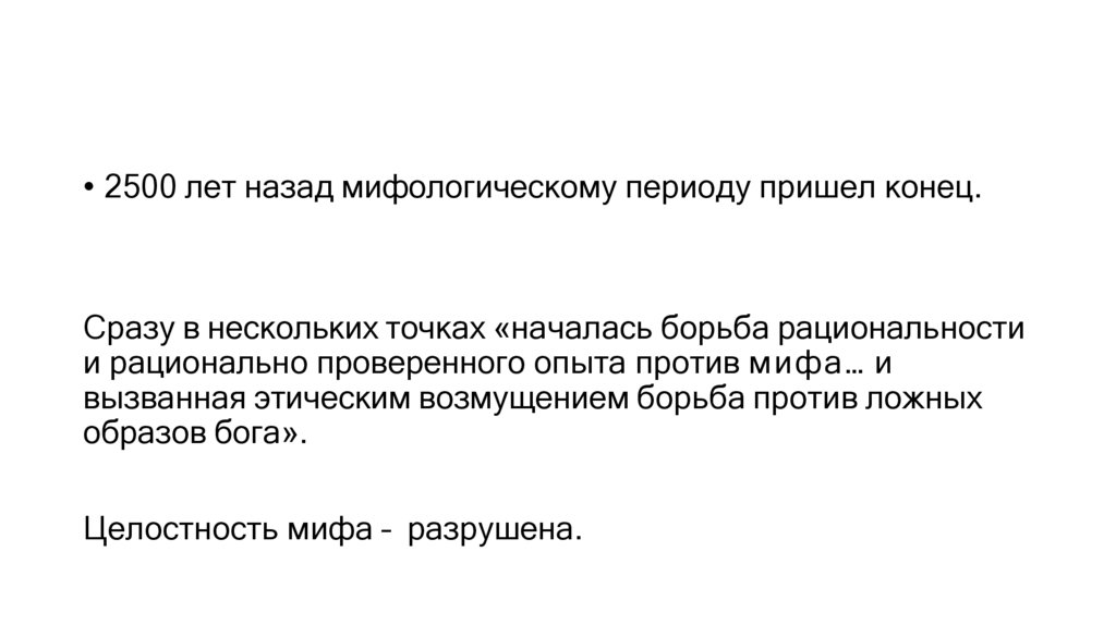 • 2500 лет назад мифологическому периоду пришел конец.Сразу в нескольких точках «началась борьба рациональности