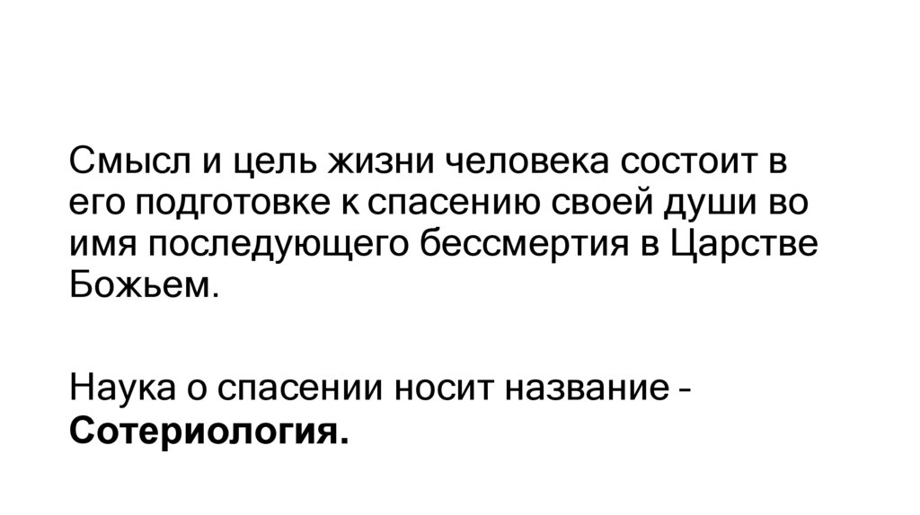 Смысл и цель жизни человека состоит вего подготовке к спасению своей души во