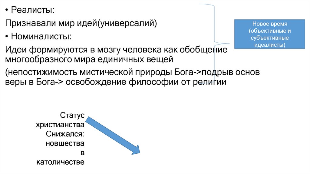 • Схоластика - тип религиозной философии,характеризующийся принципиальным подчинением примату