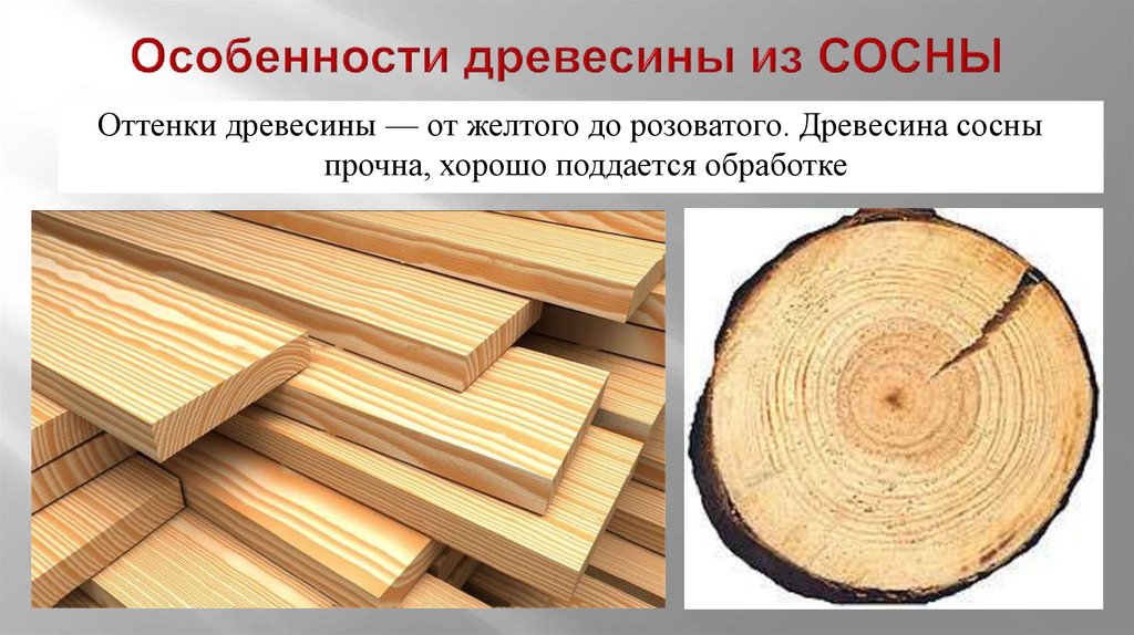 Оттенки древесины — от желтого до розоватого. Древесина сосныпрочна, хорошо поддается обработке