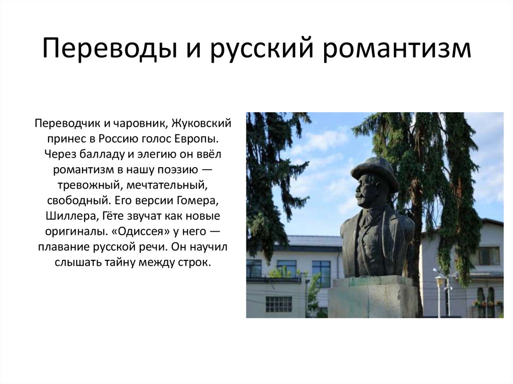 Его романтизм и баллады научили Пушкина музыкальности и внутренней
