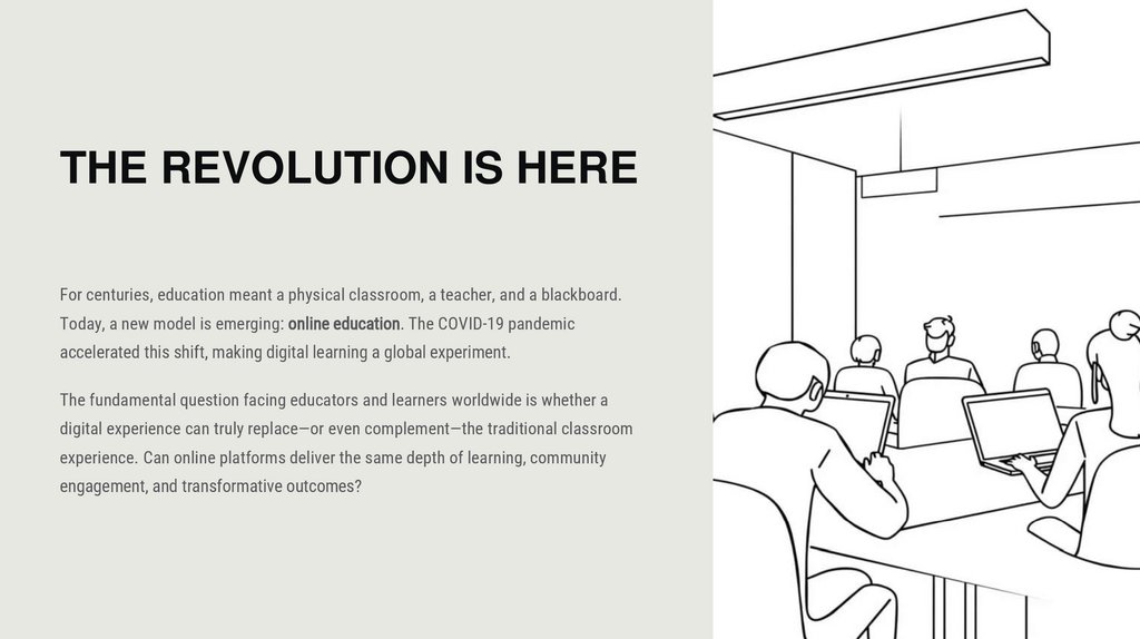 THE REVOLUTION IS HEREFor centuries, education meant a physical classroom, a teacher, and a blackboard.