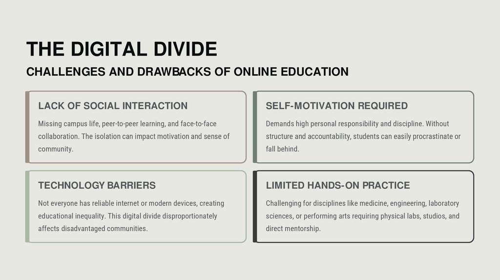 THE DIGITAL DIVIDECHALLENGES AND DRAWBACKS OF ONLINE EDUCATION