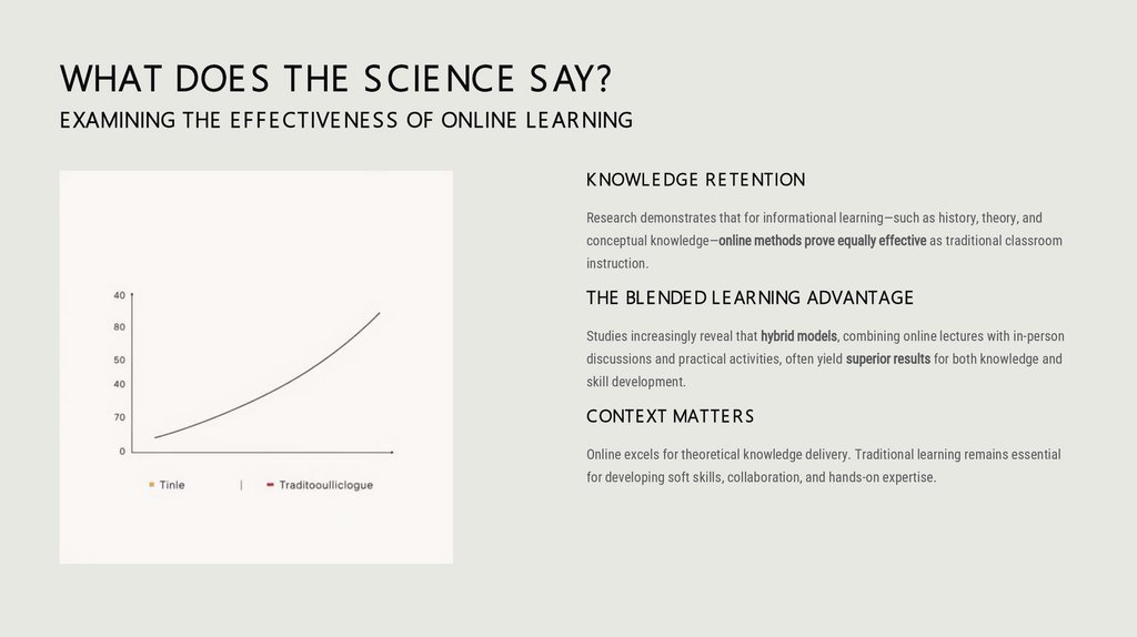Online excels for theoretical knowledge delivery. Traditional learning remains essential