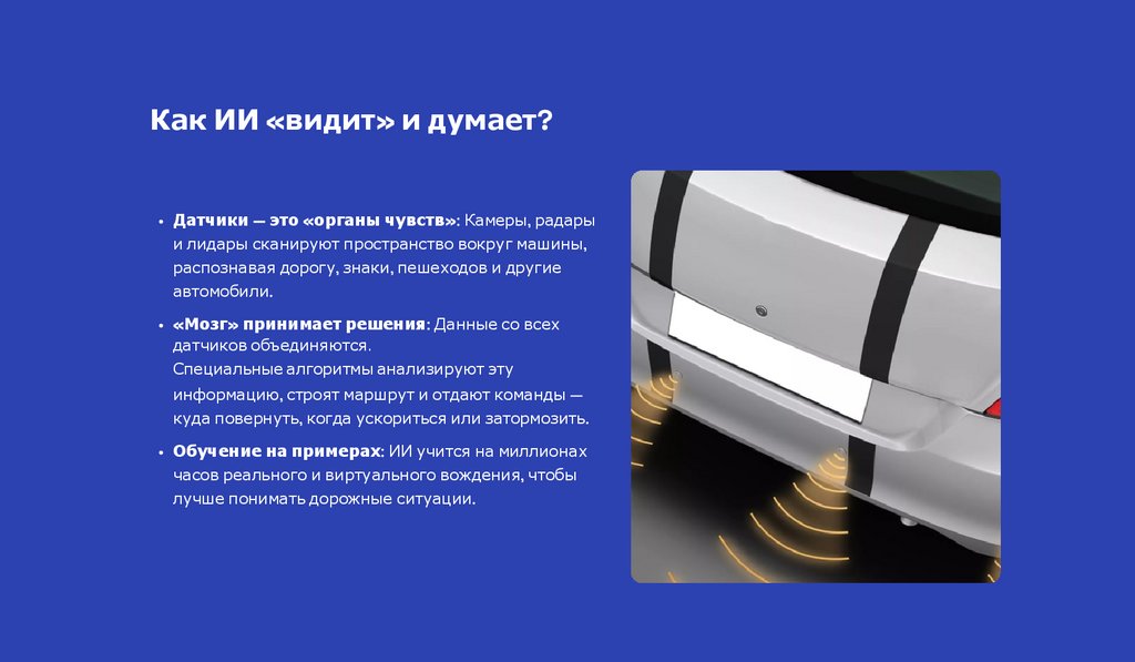 • Датчики — это «органы чувств»: Камеры, радары
