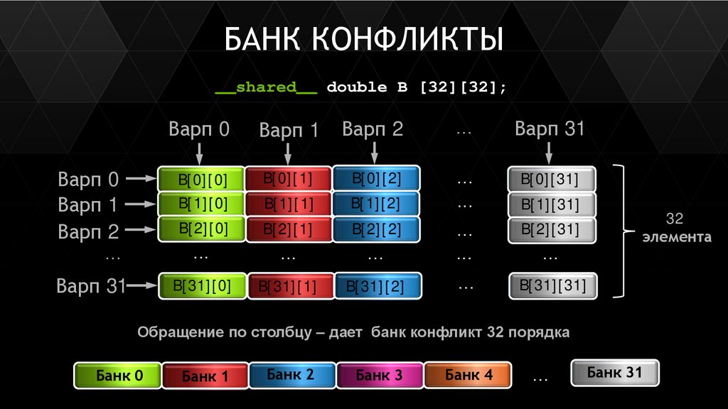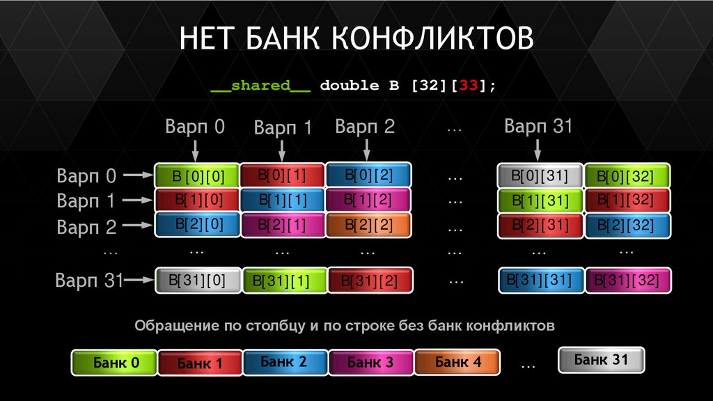 банк-конфликт имеет порядок N когда конфликтуют N нитей одного варпа