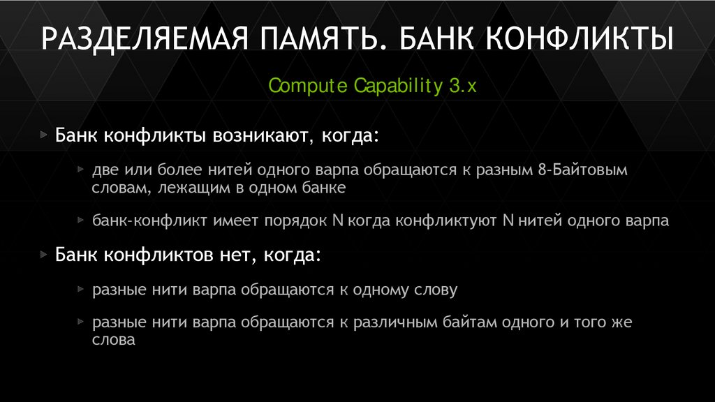 РАЗДЕЛЯЕМАЯ ПАМЯТЬ. БАНК КОНФЛИКТЫCompute Capability 3.x