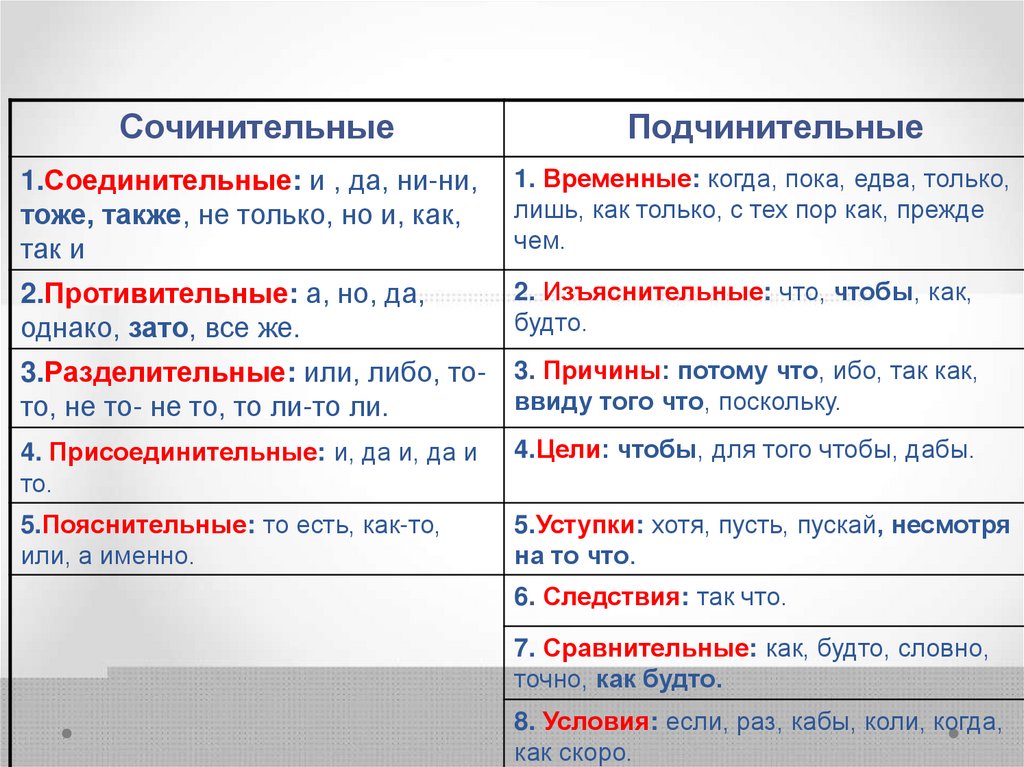 СочинительныеПодчинительные