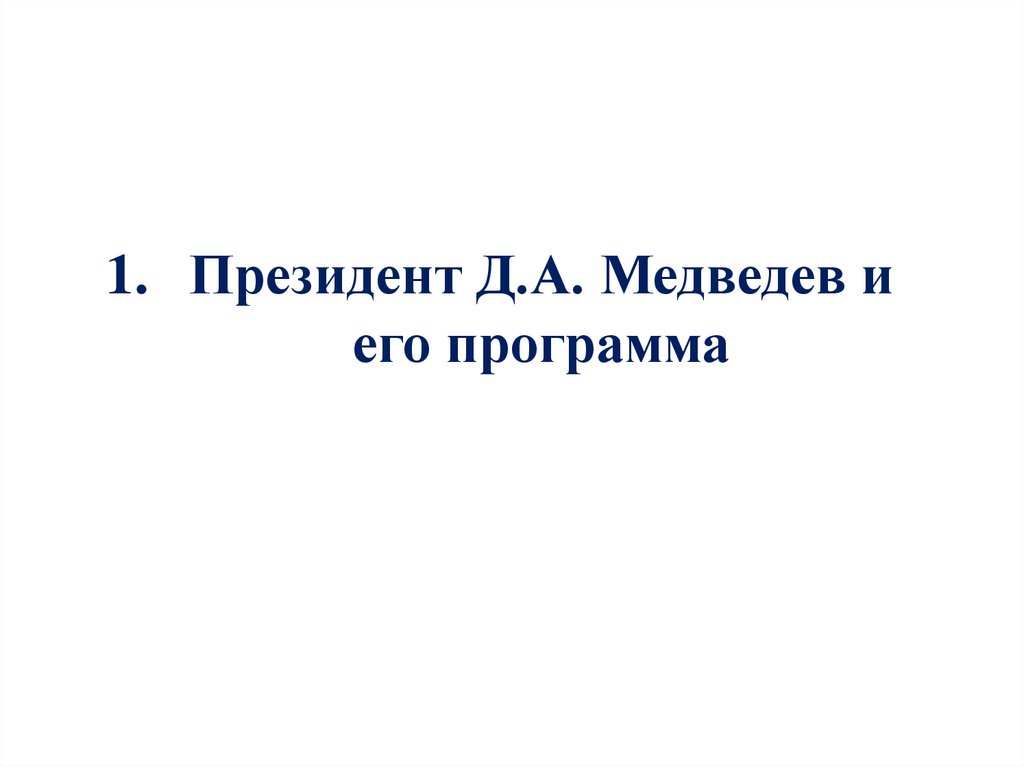 Президент Д.А. Медведев и его программа2. Военный конфликт в Закавказье