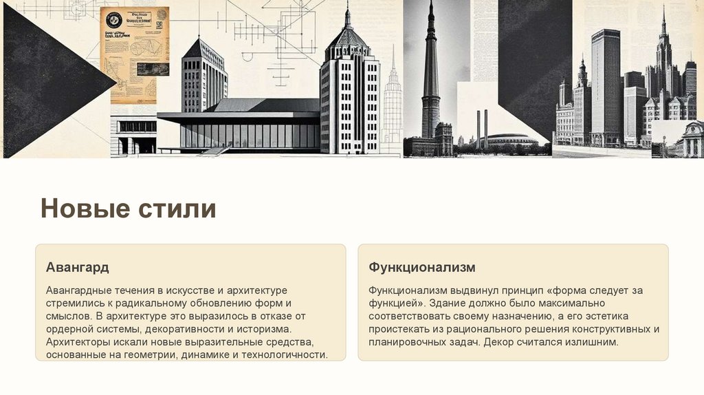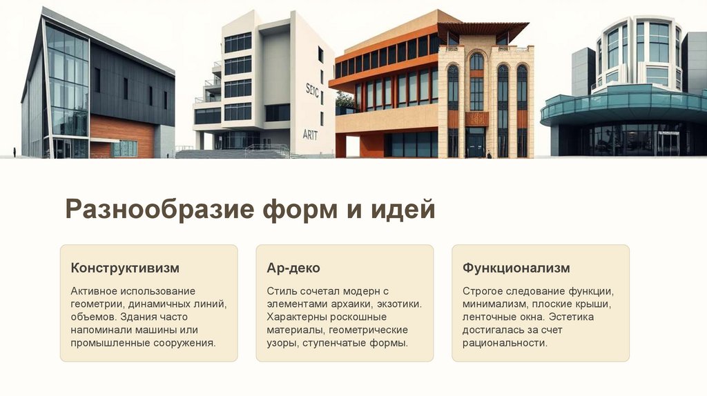 стилей XX века, включая конструктивизм, функционализм и ранний