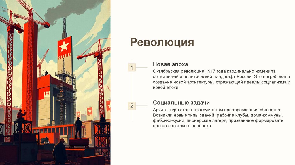 Возникли новые типы зданий: рабочие клубы, дома-коммуны,