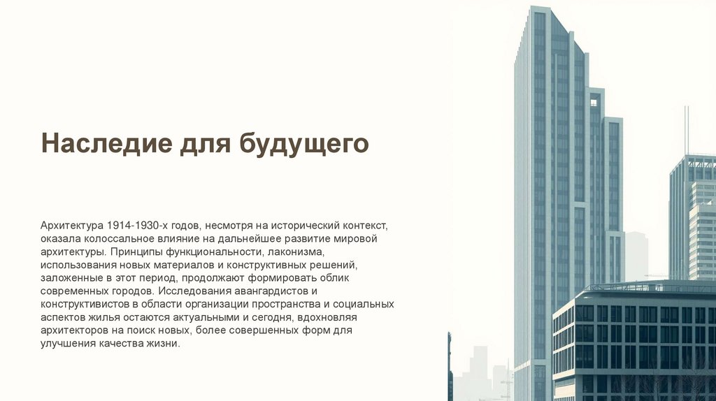 Наследие для будущегоАрхитектура 1914-1930-х годов, несмотря на исторический контекст,