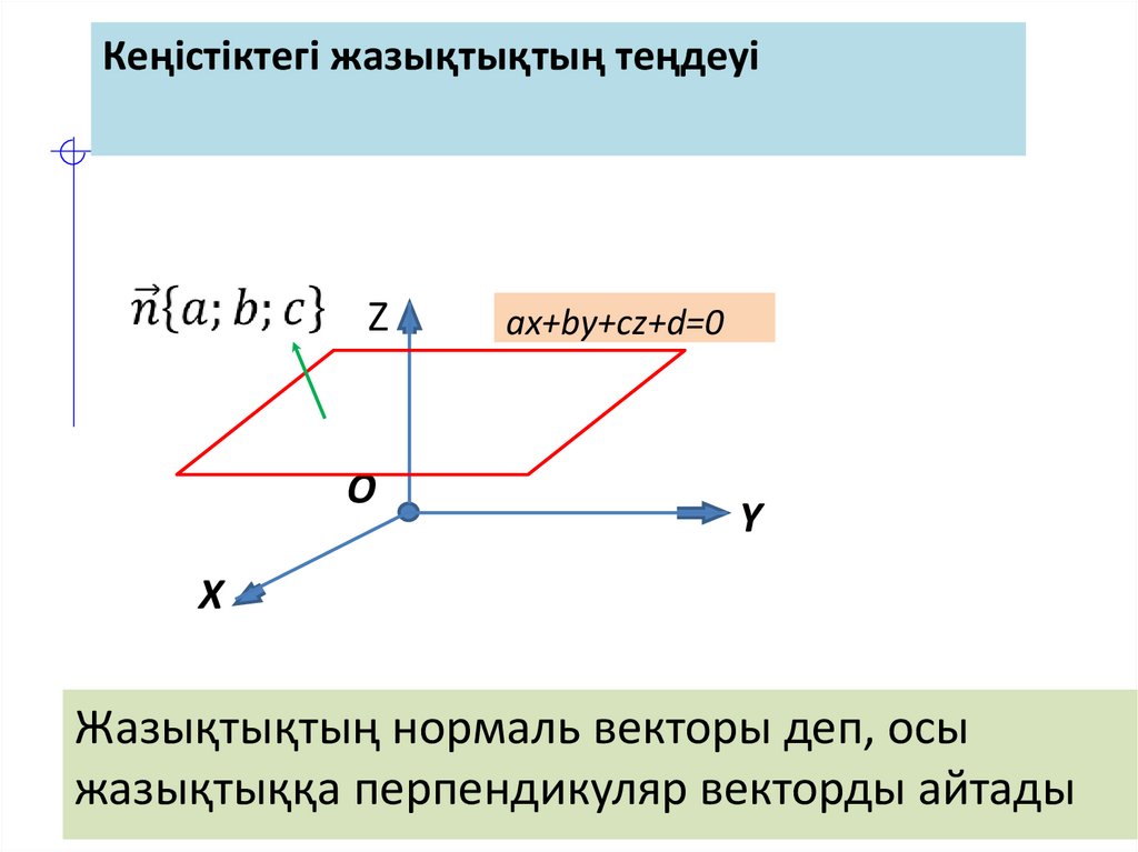 Кеңістіктегі жазықтықтың теңдеуіZ