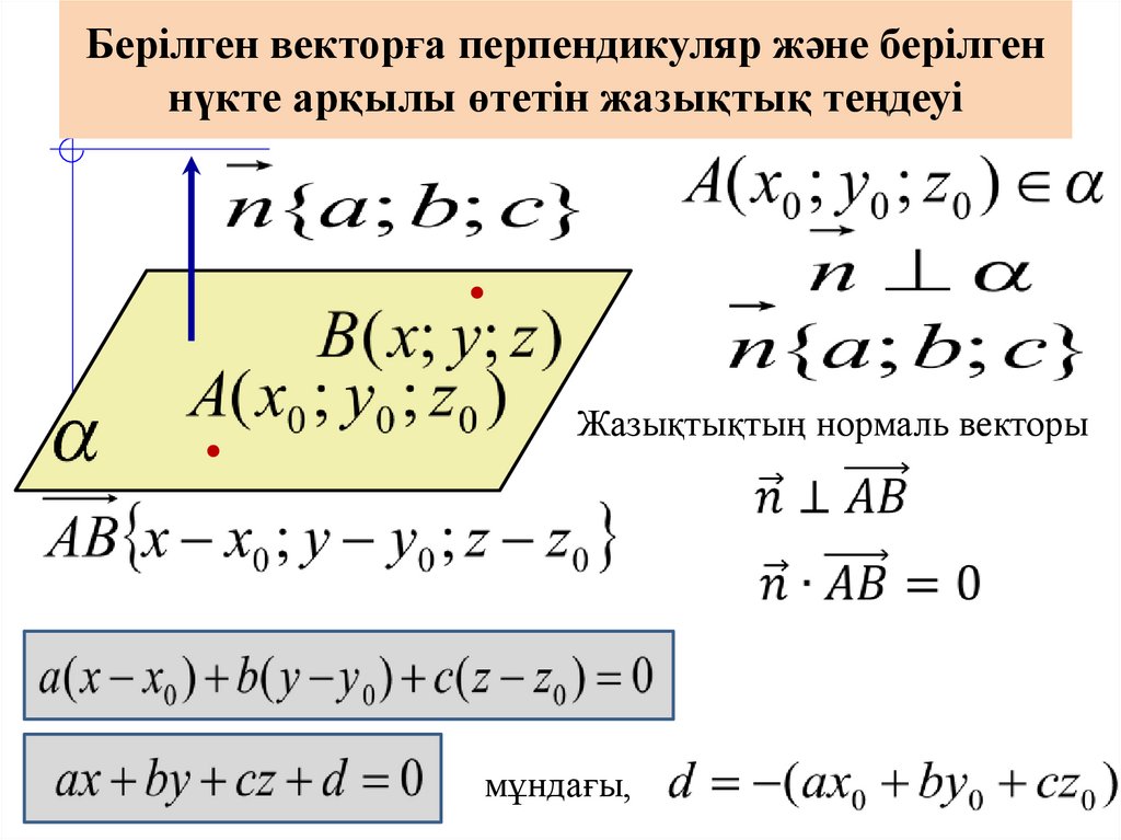 Берілген векторға перпендикуляр және берілгеннүкте арқылы өтетін жазықтық теңдеуі