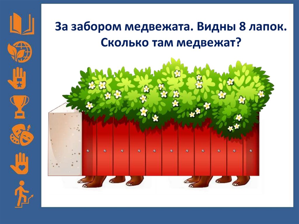 За забором медвежата. Видны 8 лапок.Сколько там медвежат?