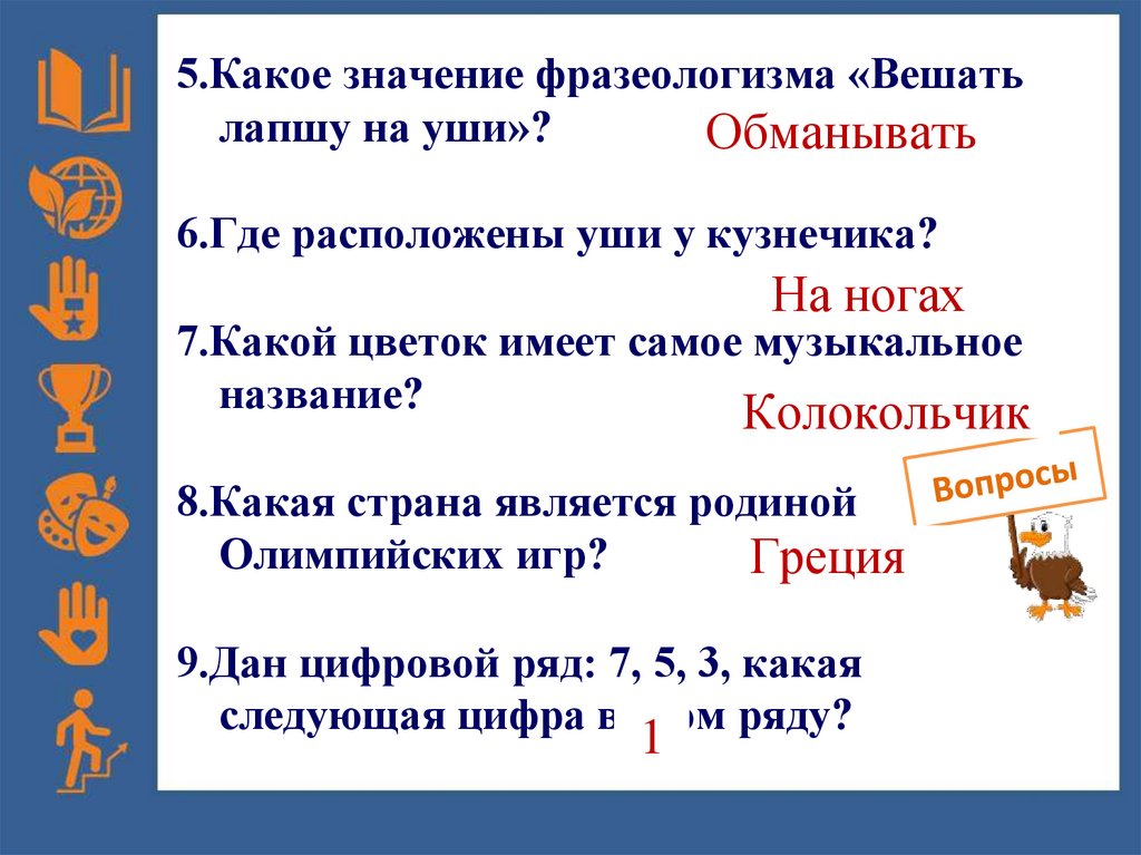 5.Какое значение фразеологизма «Вешатьлапшу на уши»?