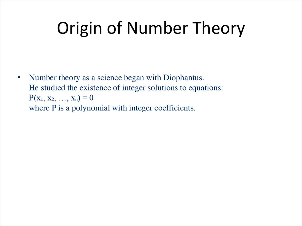 Origin of Number Theory• Number theory as a science began with Diophantus.