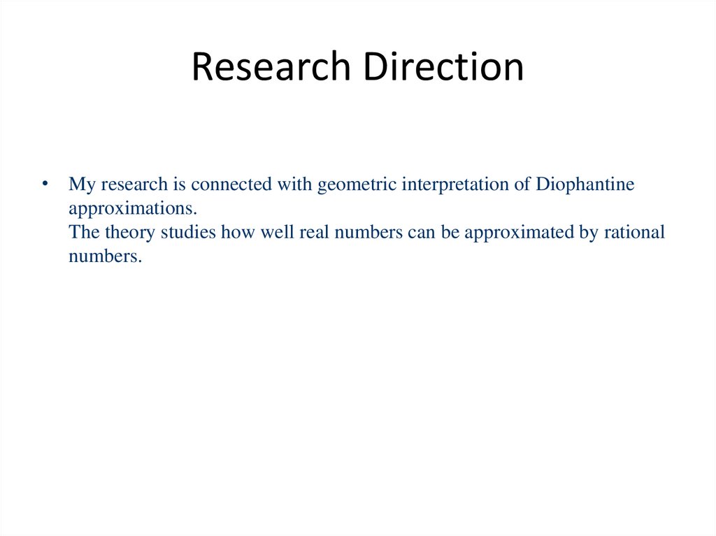Research Direction• My research is connected with geometric interpretation of Diophantine
