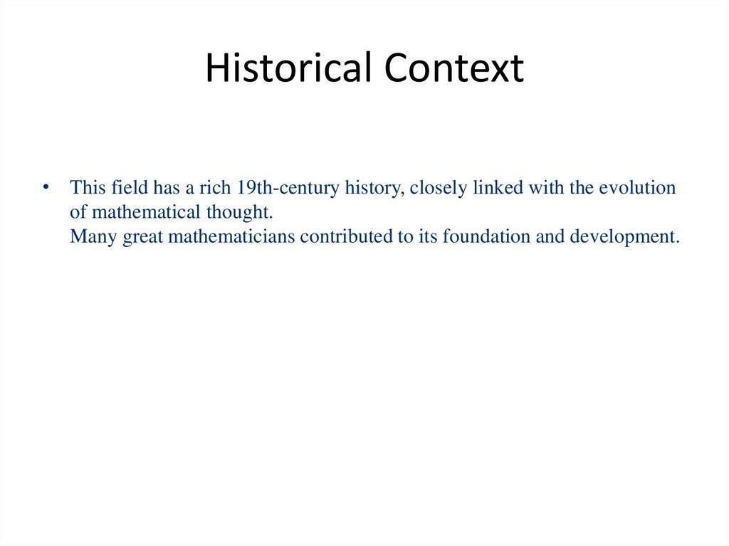 Historical Context• This field has a rich 19th-century history, closely linked with the evolution