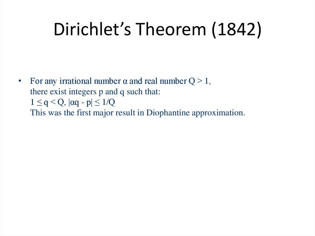 Dirichlet’s Theorem (1842)• For any irrational number α and real number Q > 1,