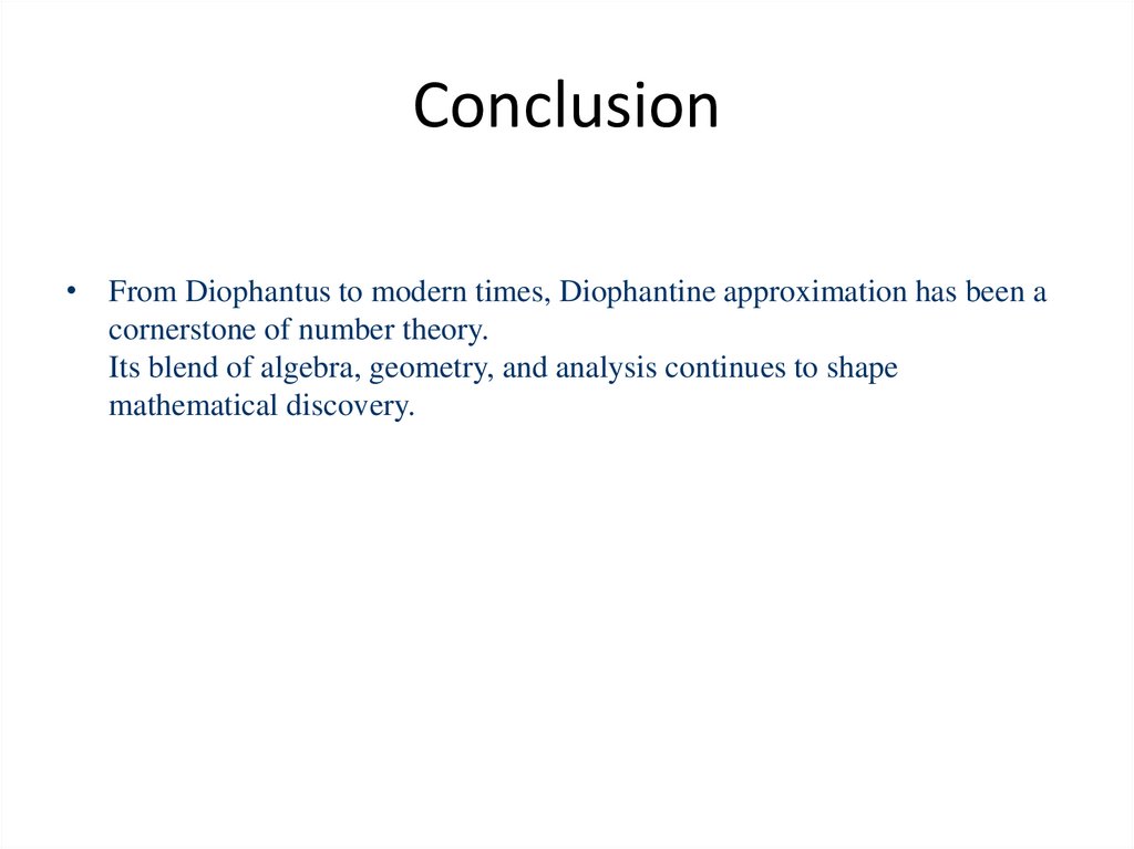 Conclusion• From Diophantus to modern times, Diophantine approximation has been a