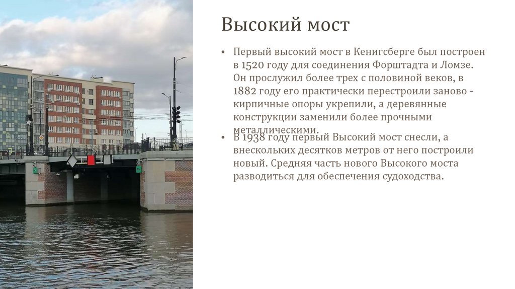 Высокий мост• Первый высокий мост в Кенигсберге был построен