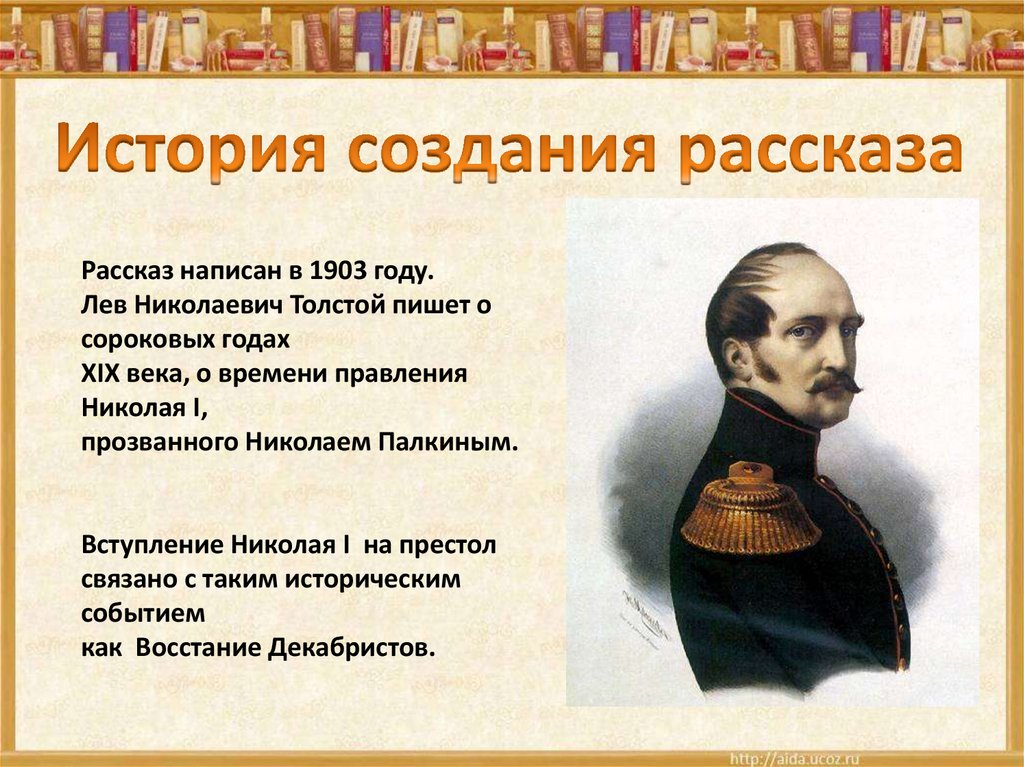 Рассказ написан в 1903 году.Лев Николаевич Толстой пишет о