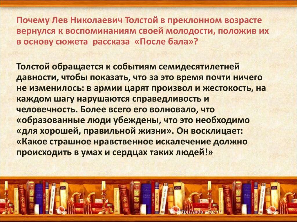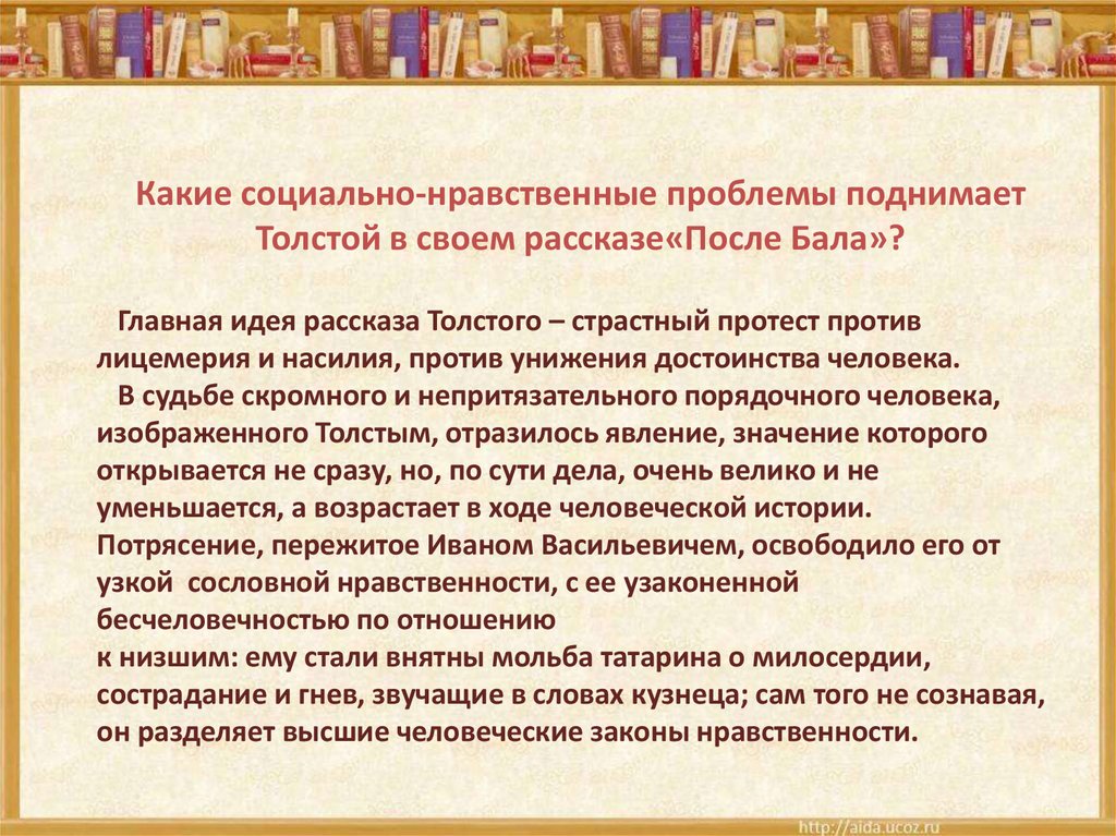 Какие социально-нравственные проблемы поднимаетТолстой в своем рассказе«После Бала»?