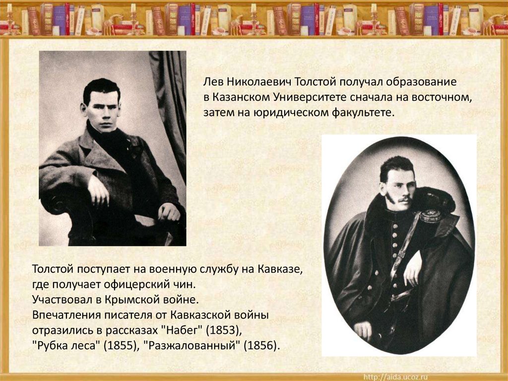 Лев Николаевич Толстой получал образованиев Казанском Университете сначала на восточном,