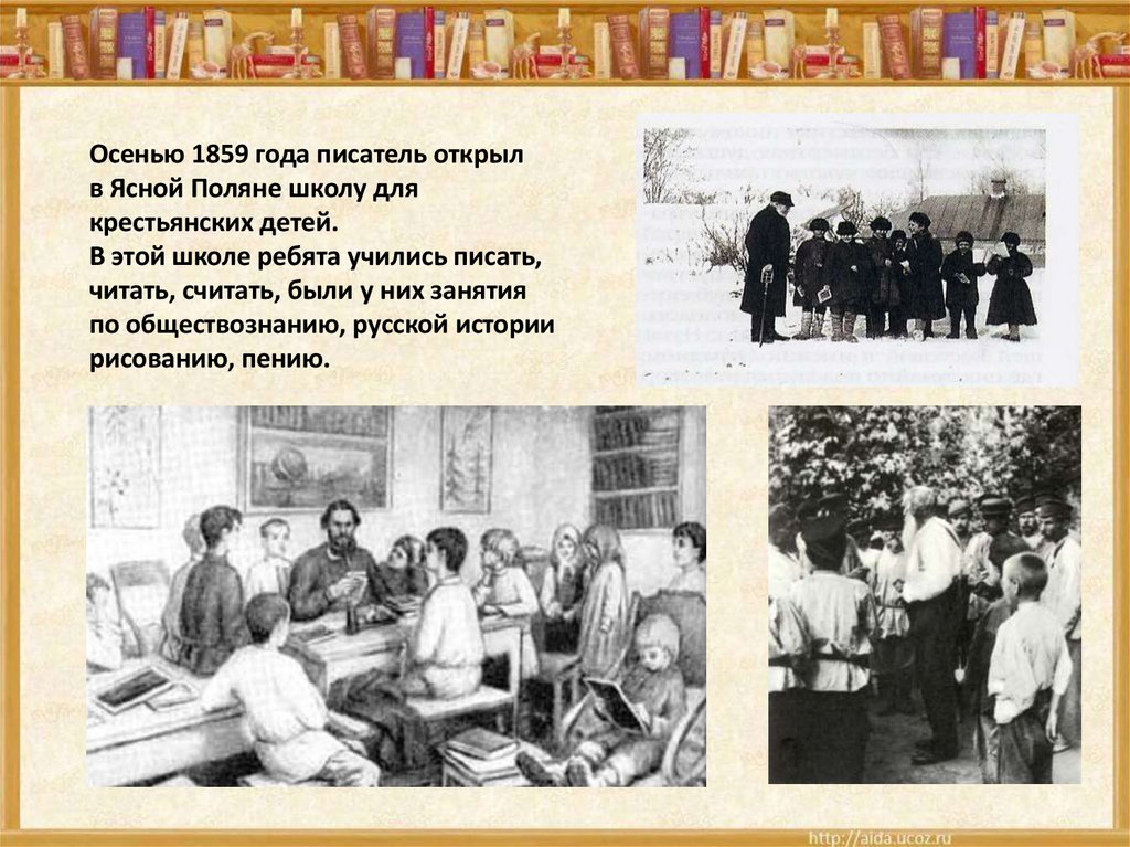 Осенью 1859 года писатель открылв Ясной Поляне школу для