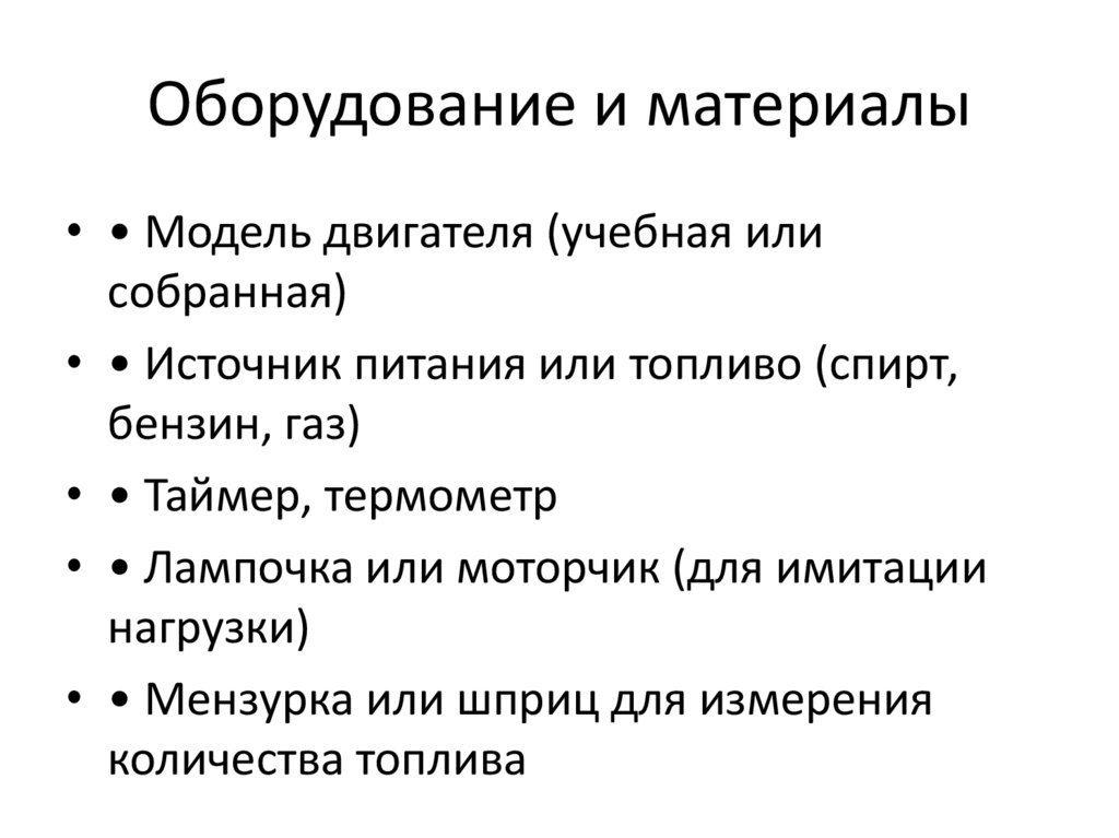 Ход эксперимента• 1. Подготовить модель двигателя.