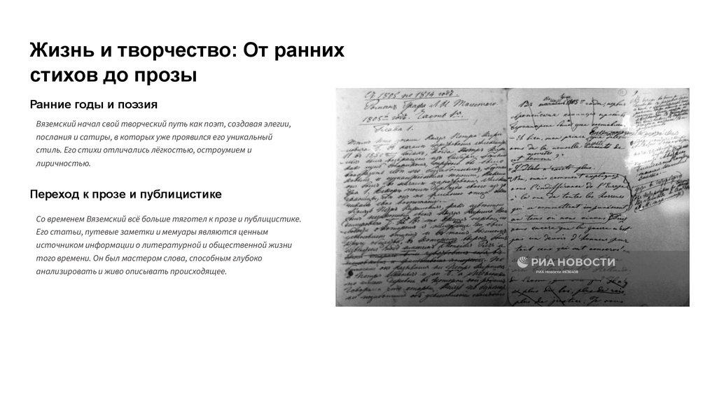 Со временем Вяземский всё больше тяготел к прозе и публицистике.