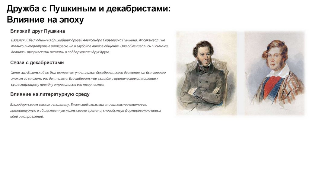 Дружба с Пушкиным и декабристами:Влияние на эпоху