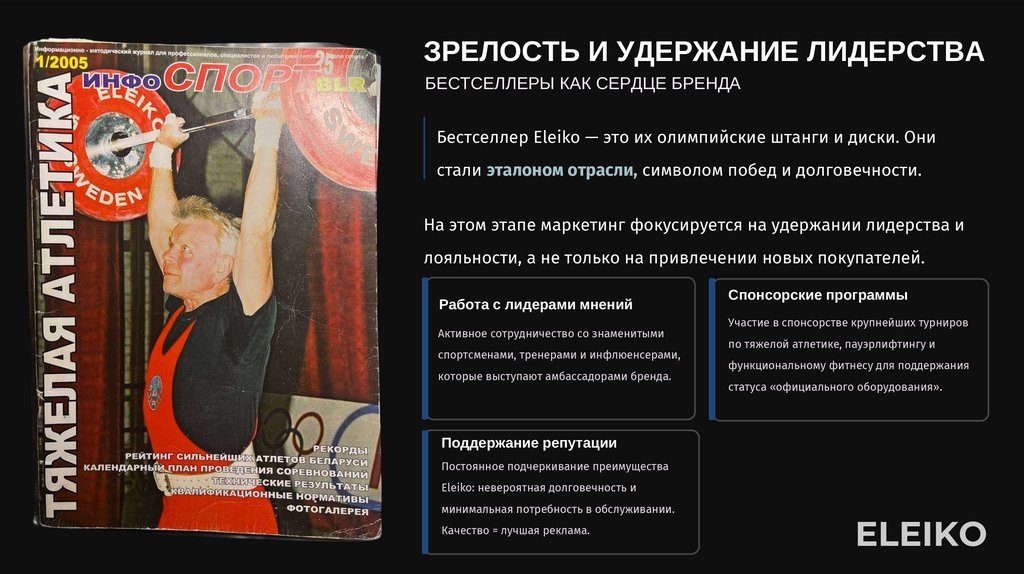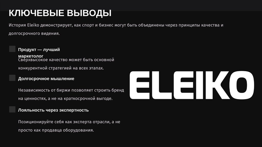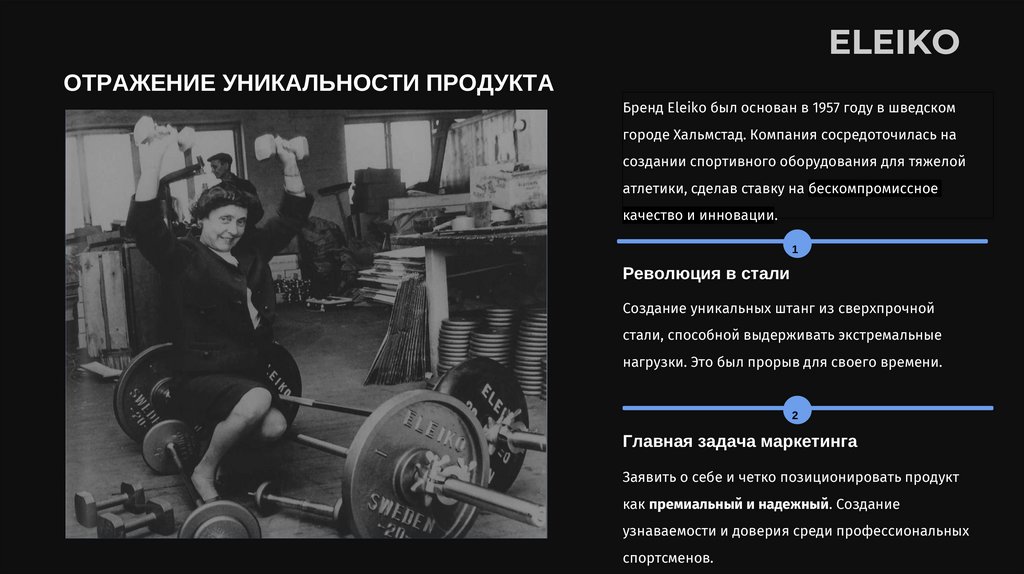 КЛЮЧЕВЫЕ ВЫВОДЫИстория Eleiko демонстрирует, как спорт и бизнес могут быть объединены через принципы качества и