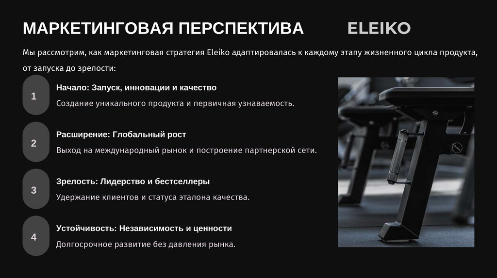 Мы рассмотрим, как маркетинговая стратегия Eleiko адаптировалась к каждому этапу жизненного цикла продукта,
