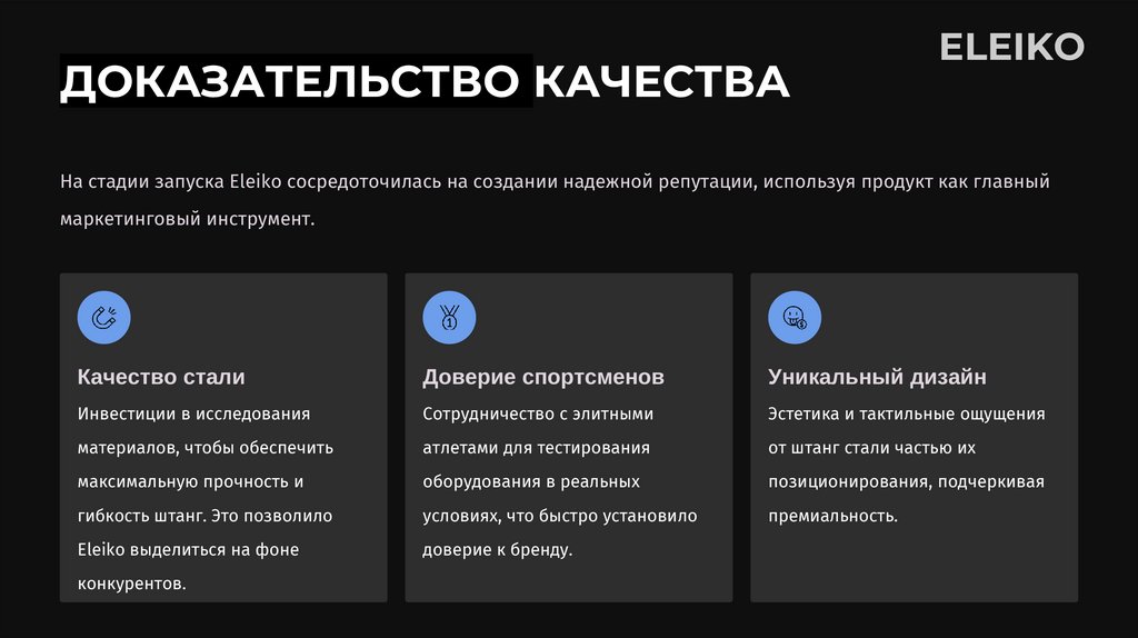 На стадии запуска Eleiko сосредоточилась на создании надежной репутации, используя продукт как главный