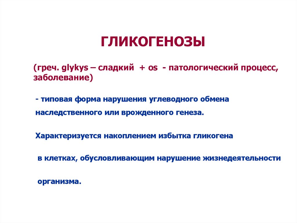 ГЛИКОГЕНОЗЫ(греч. glykys – сладкий + os - патологический процесс,