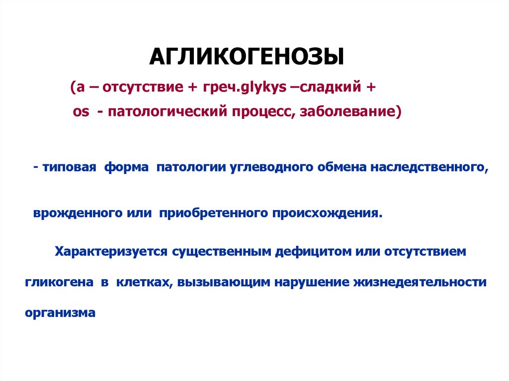 АГЛИКОГЕНОЗЫ(а – отсутствие + греч.glykys –сладкий +