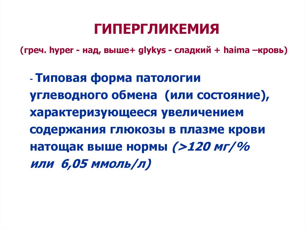 ГИПЕРГЛИКЕМИЯ(греч. hyper - над, выше+ glykys - сладкий + haima –кровь)