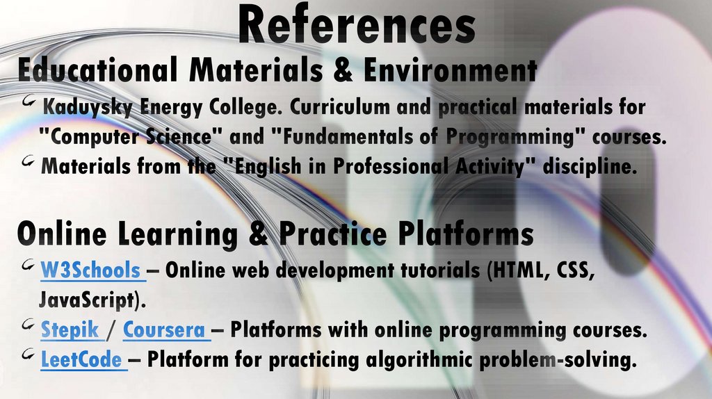 Stepik / Coursera – Platforms with online programming courses.
