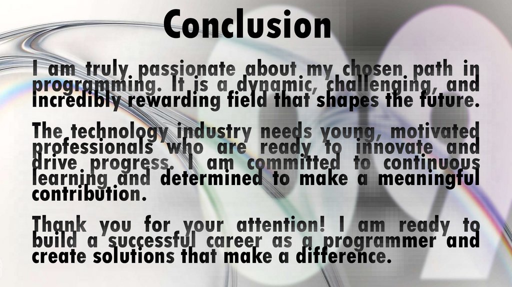 ConclusionI am truly passionate about my chosen path in