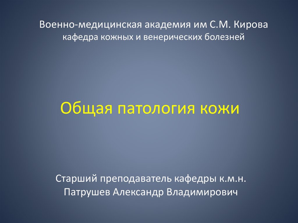 Военно-медицинская академия им С.М. Кировакафедра кожных и венерических болезней