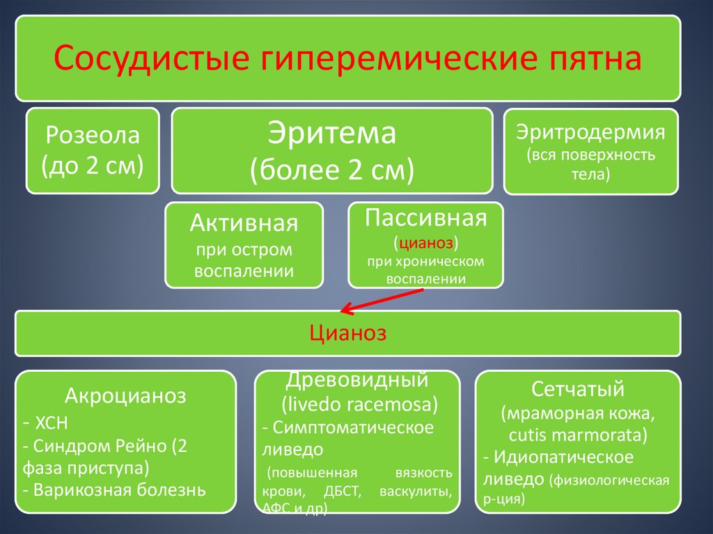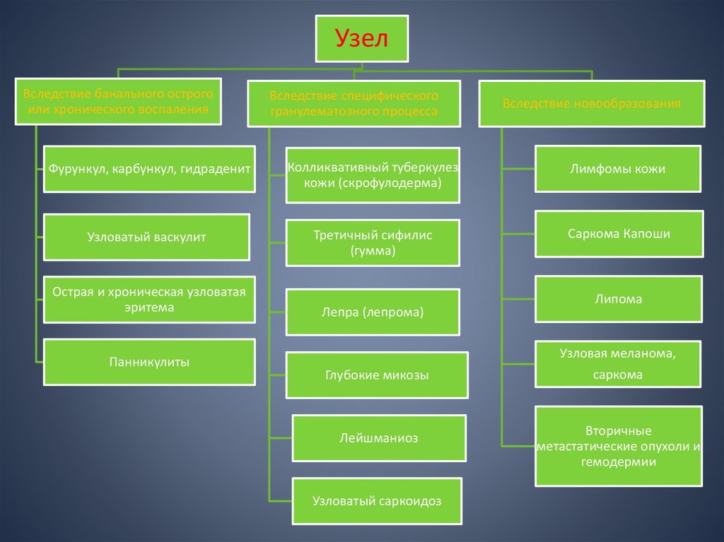 Ослера, пятна Джейнуэя), туберкулезе (узловатая