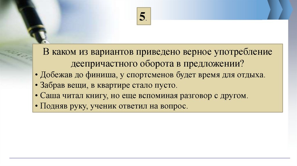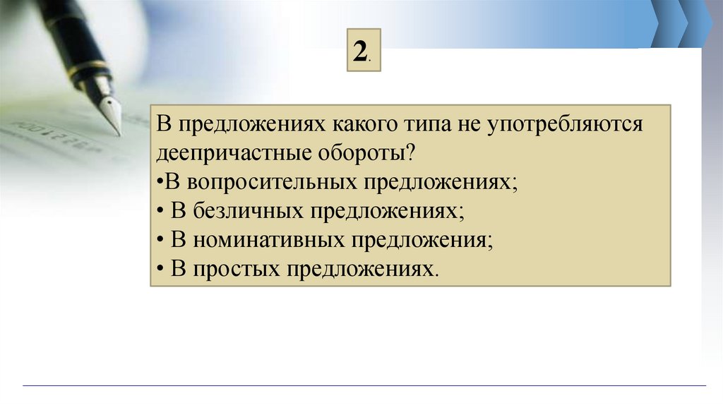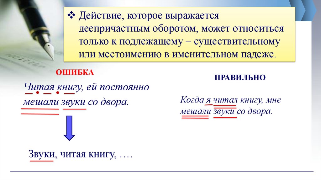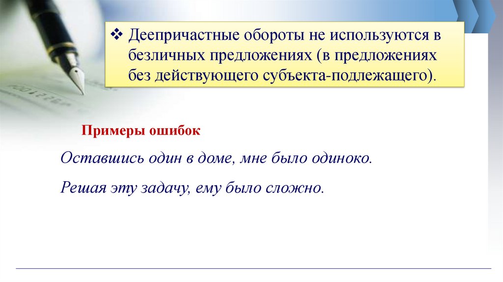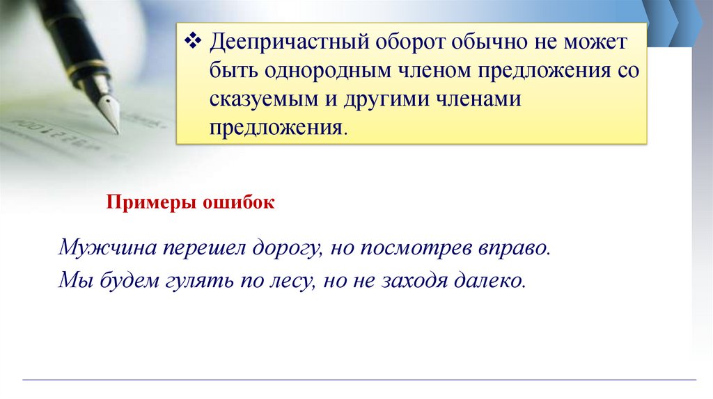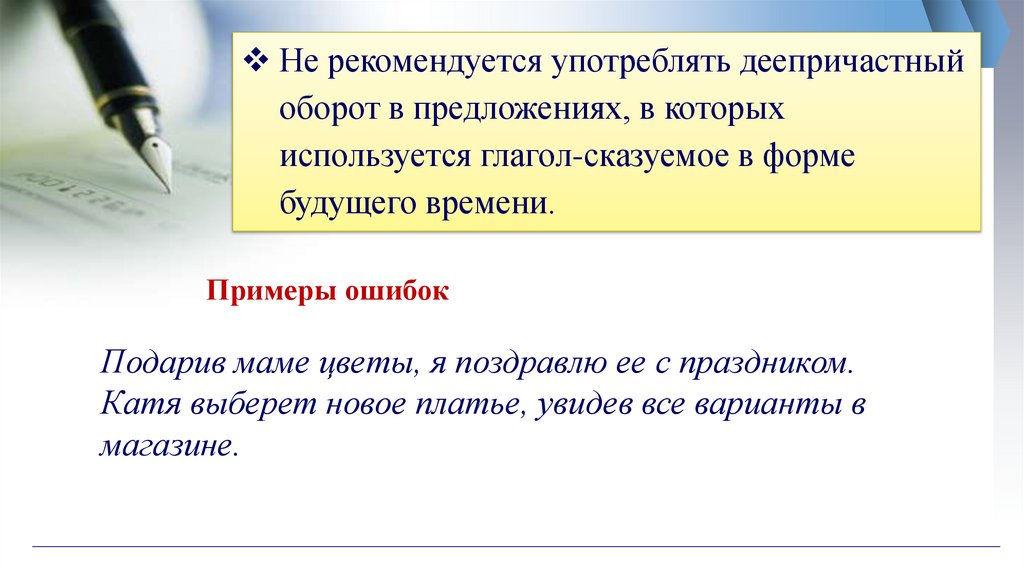 Не рекомендуется употреблять деепричастныйоборот в предложениях, в которых