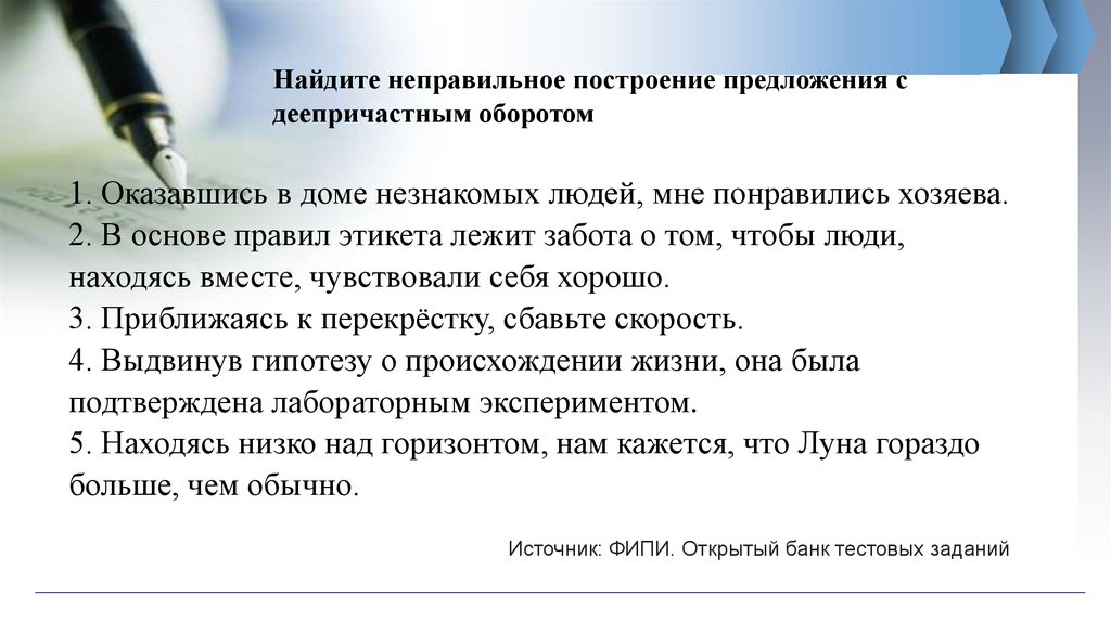 Найдите неправильное построение предложения сдеепричастным оборотом