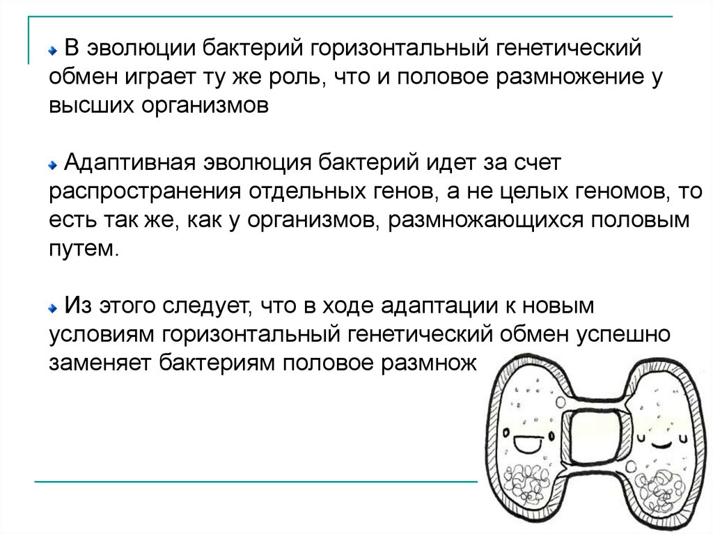 В эволюции бактерий горизонтальный генетическийобмен играет ту же роль, что и половое размножение у